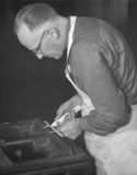 Photographs of Robert Muma at work bookbinding