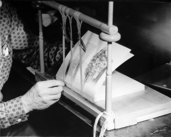 spine in preparation for stitching (1960) |