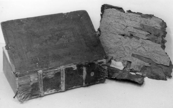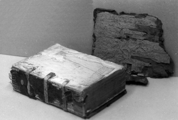 Wooden boards, paper, and leather destroyed